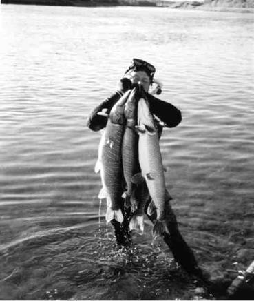 Соблазнил Игоря попробовать наше увлекательное дело. Он охотно обрядился в костюм Андрея, натянул его маску, а все остальное взял мое. Настоящий подводник (13 лет отслужил на подводных атомоходах), он легко ухватил суть этого не простого процесса, и был в восторге от увиденного. Стрелял по рыбе и даже одного хариуса зацепил.