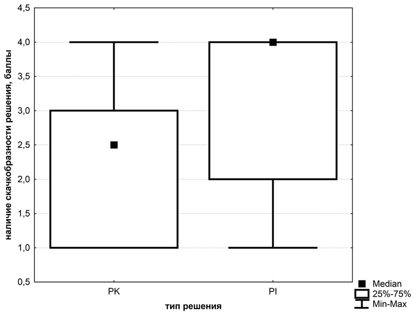 Рис. 4. Различие потенциально инсайтного решения от потенциально алгоритмизирванного по наличию скачкообразности в мыслительном процессе
