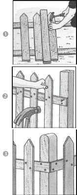 Готовые панели просто собираются между столбами. Опора каждой панели должна стоять на кирпичах или обрезках древесины так, чтобы находиться на одном уровне. Перед заколачиванием гвоздей, чтобы предотвратить раскол панелей, сначала просверлите отверстия в них.