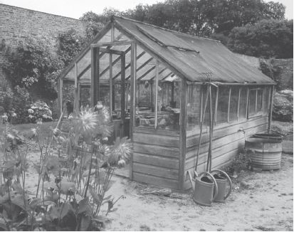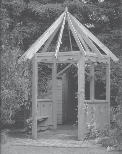 Маленький деревянный бельведер служит украшением сада и маскирует рабочий навес позади него