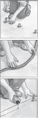 3 Следуя за нитью или шлангом, сыпьте песок из маленькой бутылки с отверстием в крышке. Это поможет вам подкорректировать границы клумбы.