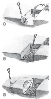 3 Переройте и перекопайте первую траншею. Удостоверьтесь, что из почвы удалены многолетние сорняки.