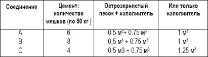 При заказе компонентов, чтобы составить 1 м3 из трех различных бетонных смесей, описанных выше, ориентируйтесь на таблицу внизу.