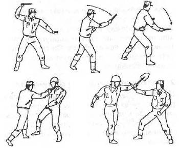 Все удары следует наносить предельно быстро и как можно точнее. Ситуации в тренировке с партнером должны имитировать внезапный встречный бой, сначала в зале (на учебной площадке), затем главным образом на местности.