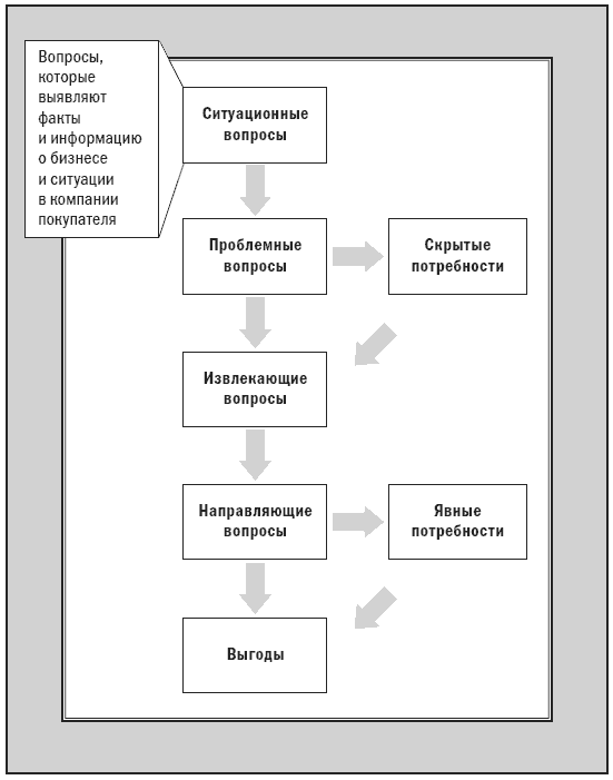 – сфокусировать ситуационные вопросы на получении ключевой информации в тех областях, в которых наиболее вероятно выявить проблемы покупателя, и развить эту информацию до уровня явных потребностей.