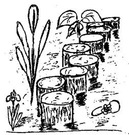 Для мощения используют различные материалы, от обработанных антисептиками спилов стволов до камней и бетонных плит (цв. вклейка фото 70). Для рыхлых (из гравия, гальки, щепы, коры) дорожек обязательно делают бордюры. «Садовый паркет» – один из самых стильных видов покрытия, его делают из древесных щитов различной формы, прежде это был в основном квадрат, сейчас форма самая разнообразная, вплоть до круга.