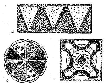 Рис. 68. Орнаментальные садики с простым (а,b ) и сложным (с) рисунком