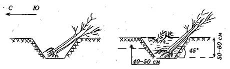 ПРИКОП– земляная траншея, предназначенная для временно-го хранения выкопанного посадочного материала (рис. 91). Обычно располагается с востока на запад, на возвышении, чтобы растения не затапливало. Растения наклонно укладывают в прикоп по одному, верхушками к югу. Иногда их оставляют до весны, но прикрывают лапником.