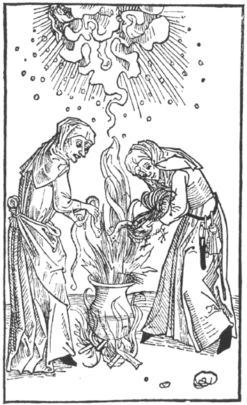 Весьма точно характеризует средневековые воззрения на черную магию легенда о Фаусте, которую использовал Гёте при создании своего великого произведения. Жил-был когда-то, сообщает легенда, «муж великого ума и быстрого соображения, способный и расположенный учиться». Звали его Фаустом. Он сделался ученым богословом, но богословие не удовлетворило его. «Священное Писание он забросил далеко за дверь или положил под лавку, ибо он имел безрассудную и надменную голову, и его звали всегда созерцателем». Вместо изучения богословских трудов стал он рыться в книгах черной магии. «Он привязал к себе орлиные крылья и хотел исследовать и небо, и землю, все до основания».