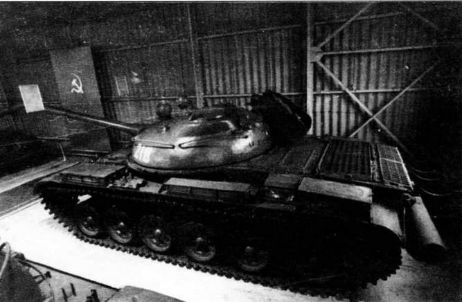 Что же касается линейных Т-62, то за время серийного производства они изменились мало. Все усовершенствования сводились в основном к установке более современного оборудования и вооружения. Так, с августа 1964 года спаренный пулемет СГМТ заменили на ПКТ, а командирский прибор наблюдения ТКН-2.— на ТКН-3. С 1965 года вместо радиостанции Р-113 и ТПУ Р-120 стали устанавливать радиостанцию Р-123 и ТПУ Р-124. В том же году ввели броневой колпак ночного прицела ТПН-1-41-11. С мая 1966 года гирополукомпас ГПК-48 заменили на ГПК-59, а в 1967 году ликвидировали люки в крыше моторно-трансмиссионного отделения. С 1972 года танк вооружили зенитным пулеметом ДШКМ. Начиная с 1975 года часть выпущенных машин оборудовали лазерными дальномерами КДТ-1.