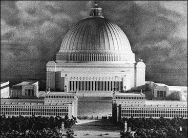 «Его явно огорчила перспектива, что он не воздвигнет величайшее монументальное здание в мире, и вдобавок угнетало сознание, что не в его власти отменить замысел Сталина, издав какой-нибудь указ. В конце концов, он утешился мыслью, что его здание будет отличаться от сталинского дворца уникальностью. Он говорил: «Подумаешь, какой-то небоскреб – чуть меньше, чуть больше, чуть ниже или выше. Купол – вот что отличает наше здание от всех остальных!», – вспоминал Шпеер в тюрьме Шпандау, где он находился в заключении с 1945 по 1966 г.