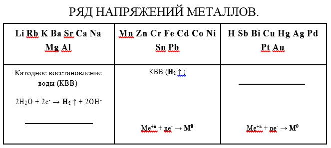 Процесс на катоде зависит от положения металла в электрохимическом ряду напряжений. На КАТОДЕ происходит ВОССТАНОВЛЕНИЕ катионов солей в РАСТВОРЕ – ПРИНЯТИЕ электронов!