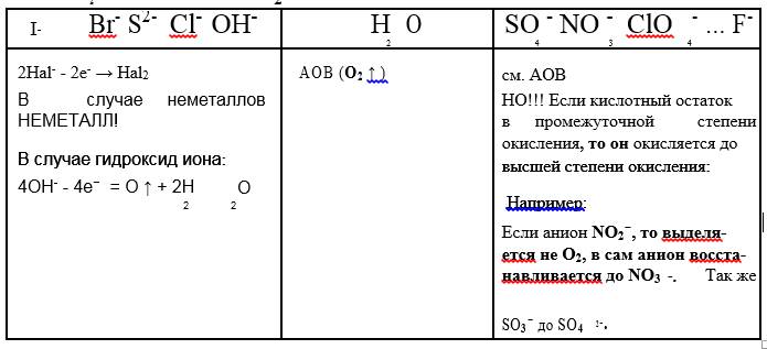 Процесс на аноде зависит от материала анода и от природы аниона. Аноды: