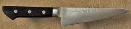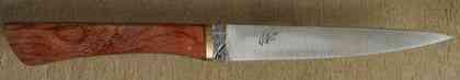 На удивление, такие ножи наиболее любимы нашими хозяйками – если провести опрос на тему "Какой нож Вы чаще всего используете на кухне?", то большинство женщин так и ответит :"Небольшой, с длиной лезвия сантиметров 15 – я им делаю все". Тот же Г.К.Прокопенков называет такие ножи "дамским угодником", и я поддерживаю это название.