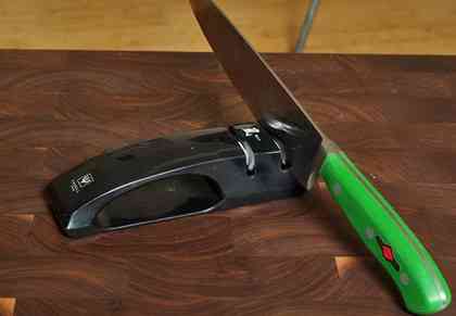 В домашнем хозяйстве гораздо более удобен заточный станок TORMEK (стоит порядка 1000 долларов) и имеет кучу дополнительных приспособлений для заточки различных инструментов – кроме ножей можно точить ножницы, топоры, стамески и много других режущих инструментов различного вида.