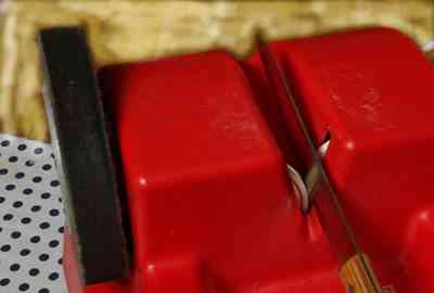 где нож протаскивается между двух камней или кругов, расположенных под определенным углом. Но, как показывает опыт, заточка такими точилками очень недолговечна.