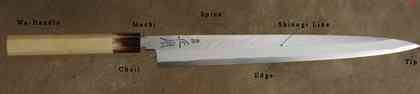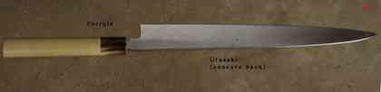 Как правило, они имеют толстый обух и одностороннюю заточку (как у стамески). Их производством занимаются в основном маленькие семейные мастерские, которые, правда, могут насчитывать не одну сотню лет своей производственной деятельности и шестое-восьмое-десятое поколение кузнецов. Это совсем не является редкостью. Обычно у таких фирм клинок производится из высокоуглеродистой стали с большой твердостью (заточка и правка только на водных камнях). Рукояти – деревянные овальные или октогональные. Типичные представители – янагиба (Yanagiba), деба (Deba) и усуба (Usuba). Эти ножи разработаны для специфической работы (в основном изготовление суши), и не очень хорошо подходят для не-японской кухни. Все они исключительно острые.