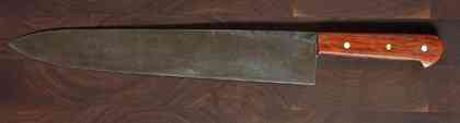 С увеличением длины, как правило, увеличивается и ширина ножа. А ширина очень полезная вещь – во-первых, удобнее (ровнее) резать некоторые продукты, во-вторых, можно использовать как лопатку для переноса нарезки в кастюлю. Нельзя также забывать, что CHEF's не только режущий инструмент. Его обух можно использовать для разбивания панциря крабов и отбивания мяса, а боковую сторону для раздавливания чеснока.