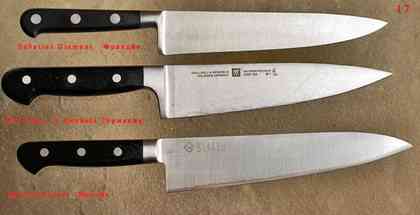 Но большинство работ все-таки приходится на всю режущую кромку, и здесь надо отметить отличия в форме лезвия немецкого, французского и японского ножей.