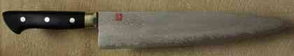 Длина клинка варьируется от 6 до 12 дюймов (от 15 до 30 см) и более. Лезвие короче 8 дюймов (20см) не очень удобно для многих работ, а к лезвию более 30 см надо надо привыкнуть и иметь соответствуюшие размеры стола и разделочных досок (ну и кухонь, естественно). Стандартные размеры европейского шефа – 6-8-10-12 дюймов (15-20-25-30 см). Gyutou, японский эквивалент европейского шефа бывает 180мм, 210мм, 240мм, 270мм и 300мм. В отличие от Европейских ножей, у японцев система метрическая (или своя собственная, длину клинка они измеряют в SUN, 1 sun = 3.037 см). Из европейских производителей только Messermeister делает 9 дюймовые (23 см) ножи. С моей точки зрения, оптимальной длиной является 8 –10 дюймов (20 – 25см). Профессионалы предпочитают более длинные – 10 –12 дюймов ( 270 – 300 мм) и больше, а на обычную кухню замечательно подойдут и 8 дюймовые ( 200– 210 мм) ножи.