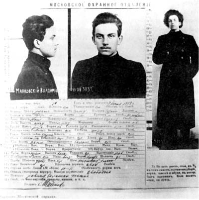 Последующие два года, 1908–1909, Маяковский практически полностью посвятил политической деятельности. Он читал и распространял нелегальную литературу среди булочников, сапожников и типографских рабочих. Полиция вела за ним слежку, и, несмотря на то что ему было всего пятнадцать-шестнадцать лет, его несколько раз арестовывали; во время одной облавы он съел вместе с переплетом записную книжку, где содержались адреса, которые не должны были попасть в руки полиции. Два первых ареста длились недолго, каждый по месяцу, однако в третий раз Маяковскому пришлось просидеть в тюрьме полгода, причем пять месяцев — в камере-одиночке.