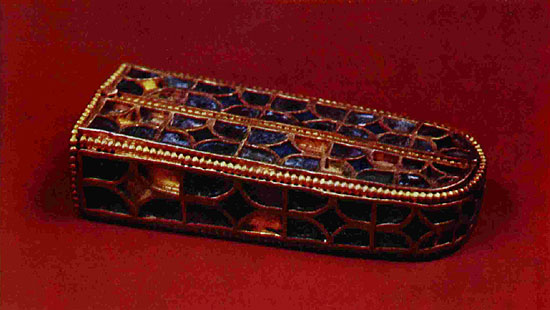 Золотой наконечник ремня с перегородчатой инкрустацией (Перещепинский клад. Полтавская область).