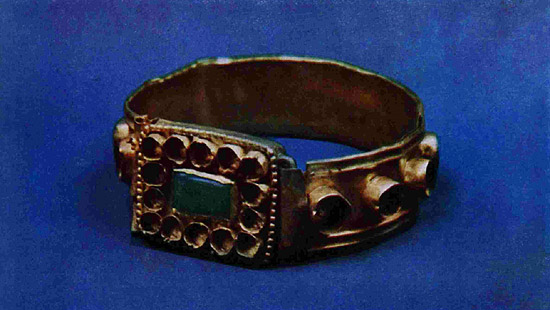 Золотой браслет VII в. с изумрудом (Перещепинский клад, Полтавская область).