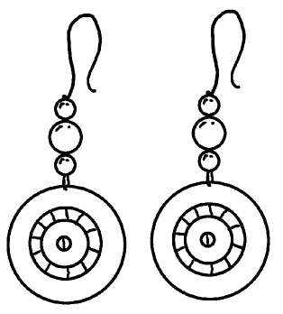 Так же выполните вторую серьгу. Краской аккуратно нанесите на поверхность кожаного круга концентрический рисунок. После его полного высыхания покройте изделие лаком (рис. 140).
