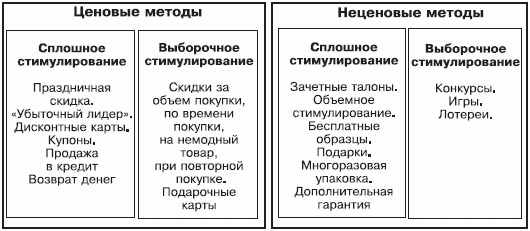 На рисунке 2.3 показано распределение некоторых методов ценового и неценового стимулирования на сплошное и выборочное.
