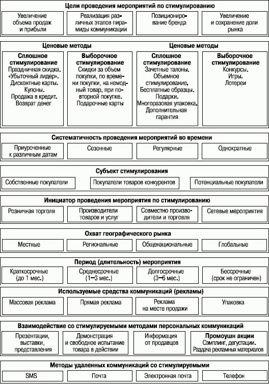 Первыми стали применять мероприятия по стимулированию организации розничной торговли [84]. Они реализовывали определенный, ограниченный круг целей, связанных с ускорением товарооборота и увеличением объемов продаж.