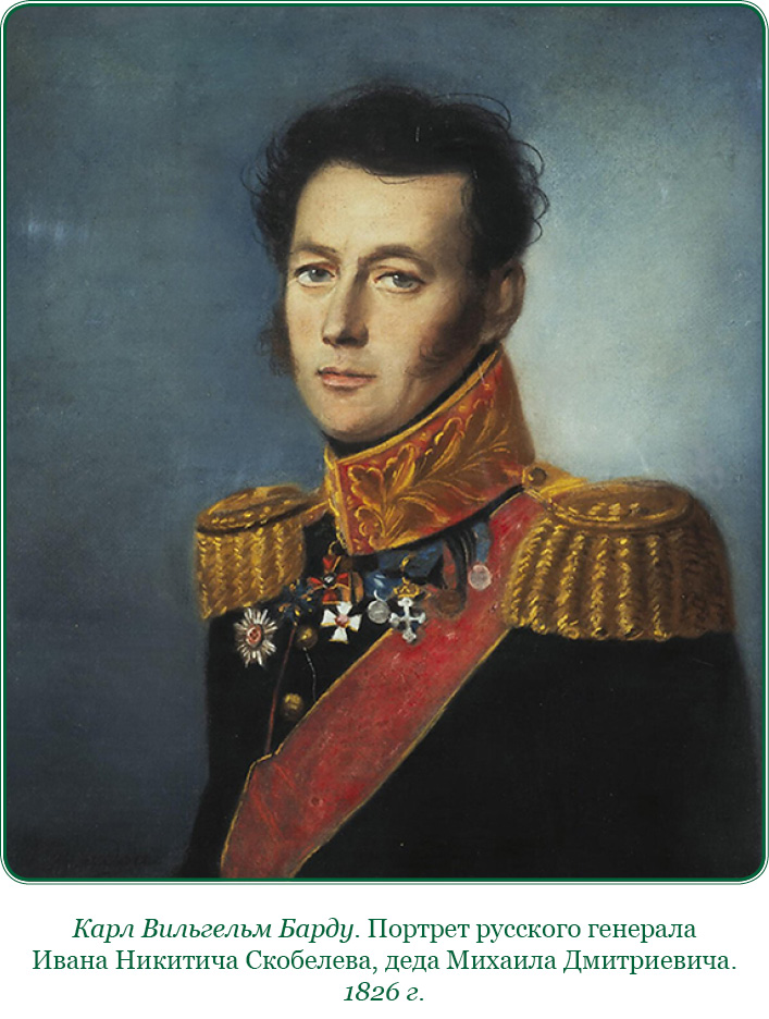 Скобелев-отец, человек довольно суровый, скупой и старых взглядов, имел меньшее влияние на своего сына. Георгиевские кресты как деда, так и отца с детских лет служили путеводной звездой для Скобелева-ребенка и определили его карьеру. Дед, Иван Никитич Скобелев, заработал свои два Георгиевских креста при взятии Парижа и Варшавы. 25 июня 1807 года, в сражении под Фридландом [3] , он был ранен пулею навылет в правую ногу. 20 августа 1808 года, при завоевании Финляндии [4] , ему оторвало два пальца правой руки и контузило грудь. 18 марта 1814 года под Парижем он был ранен в левую руку, а 14 апреля 1831 года в сражении с польскими мятежниками Ивану Никитичу ядром оторвало кисть левой руки. Образ израненного героя-деда не мог не захватить впечатлительного мальчика.
