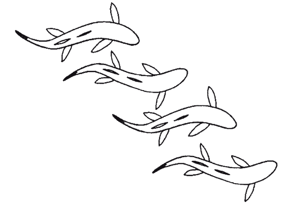 Рисунок, изображающий, как складки кожи древних бесчелюстных рыб могли превратиться в две пары плавников.
