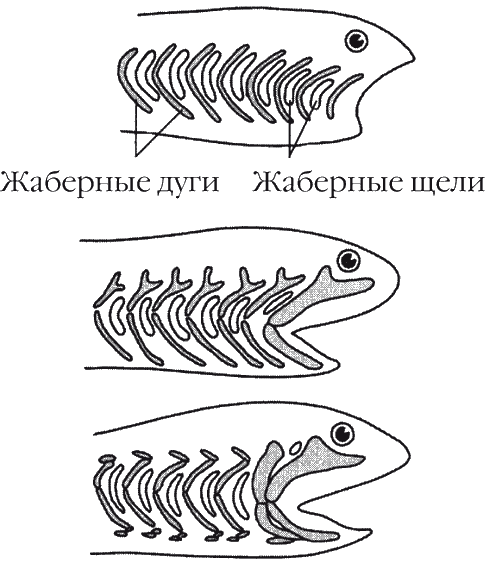 Одна из реконструкций процесса превращения жаберных дуг в челюсти.