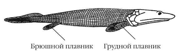 Кистеперая рыба пандерихтис (длина примерно 1 м).