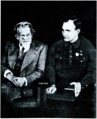 М И. Калинин и Д. В. Емлютин в Кремле после вручения правительственных наград в сентябре 1942 года.