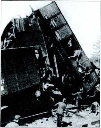 Вражеский эшелон, подорванный членами оперативно-чекистской группы.