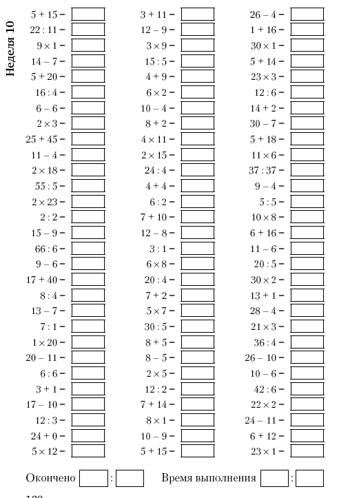 1. Сосчитайте громко вслух с максимальной быстротой от 1 до 120, затраченное время в секундах впишите ниже.