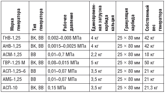 Технические характеристики передвижных ацетиленовых генераторов наиболее распространенных марок представлены в табл. 2.
