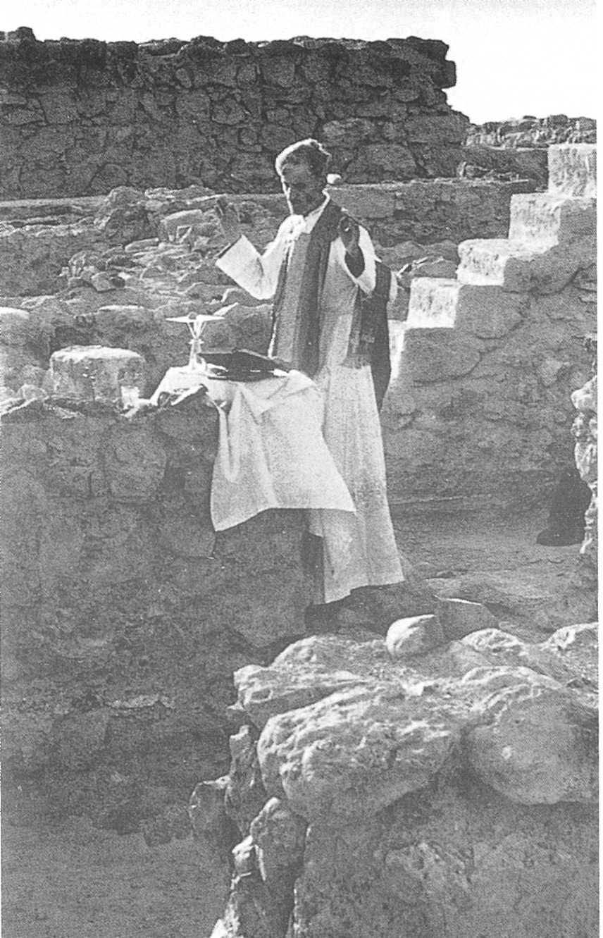 16. Отец Жан Старки совершает мессу на развалинах Кумрана перед началом археологических раскопок.