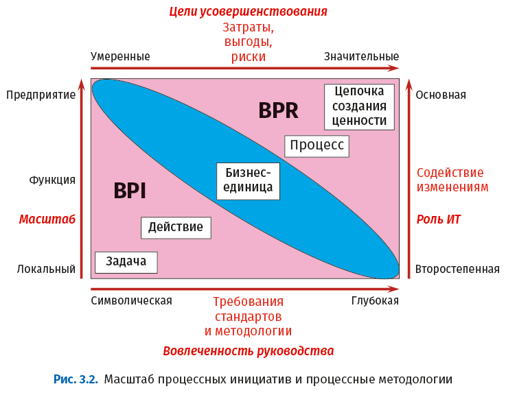 Управление бизнес-процессами концентрируется как на бизнес-результатах, так и на путях их достижения. Инициативы управления бизнес-процессами могут различаться по масштабу, как показано в таблице.