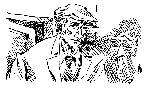 Он стоял, нагнув голову и вцепившись в косяки. Дождевые капли стекали с низко подстриженных висков на худые щеки. Пиджак и брюки были насквозь пропитаны водой.