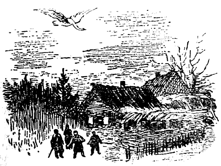 Но не успели они переброситься и несколькими словами, как вдали послышался крик птиц. Все прислушались. Крик становился слышнее и слышнее. Всматриваясь в уже наступившие сумерки, рыбаки увидели стаю белых лебедей. Покружились они над озером, покричали и сели на ночёвку.