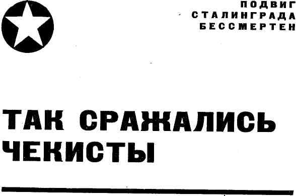 В рядах тех, кто самоотверженно сражался с врагом, презирая опасность и не щадя своей жизни, были и воины-чекисты, работники органов государственной безопасности и милиции. Находясь на переднем крае борьбы с сильным и коварным врагом, советские чекисты с честью выдержали суровое испытание и вписали славные страницы в героическую летопись битвы на Волге.
