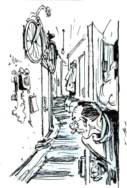 У нас в квартире было несколько соседей. Наша квартира называлась «коммунальной» — мы жили коммуной. Жить коммуной — это значит иметь всё общее и всем делиться. У нас в квартире, конечно, не всё было общее: например, пальто, галоши, кровати, зубные щётки, полотенца и другие личные вещи. Ими мы пользовались сами и никому не давали. И соседи их тоже никому не давали. Но так было потому, что до полной коммуны мы не доросли. Так объяснил мне дядя. Зато у нас было много общего: кухня, коридор, ванная, телефон, щётки для подметания полов, электросчётчик и так далее. А остальным мы просто делились. Мы делились деньгами (давали друг другу взаймы), картошкой, хлебом, солью, чайниками, примусами, сковородками, чаем, кастрюлями, лыжами, спичками, папиросами, игрушками и ещё разными другими вещами. Жили мы дружно.