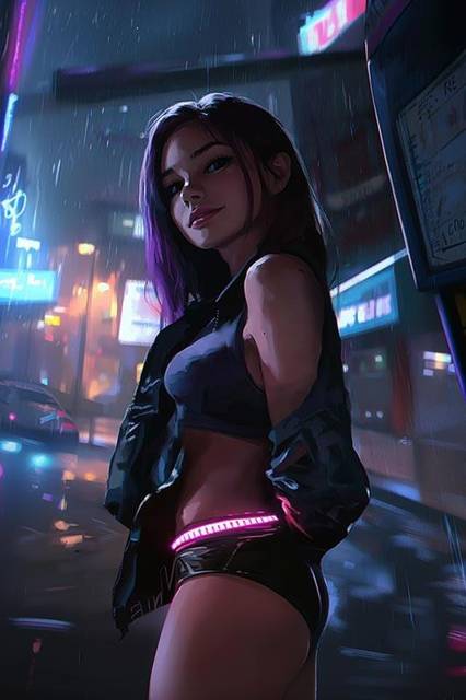 Девчонка откидывает полы куртки, показывая шорты с неоновой подсветкой.