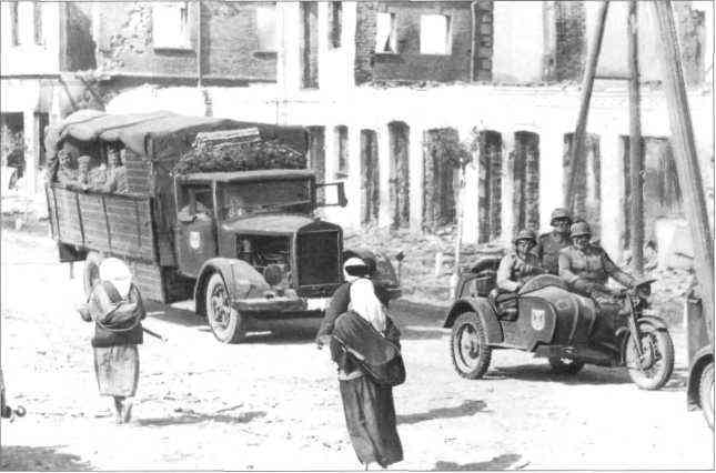 Две фотографии сделаны в Минске в начале июли 1441 г на одной и той же улице с интервалом и несколько минут. На одном снимке и кадр попал тонн Pz. Kpfw. 38(t) с топливной бочкой ни прицепе. На другом снимке — полугусеничный бронетранспортёр Sd. Kfz. 251, фашистский флаг на броневике используется как средство быстрой идентификации с воздуха. На бронетранспортёры установлены направляющие для «Stuka zu Fuss».