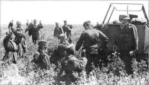 Нижний снимок — Экипаж танка Pz. Kpfw II. И из 24-й панцердивизии смотрит на сдающихся в плен красноармейцев, юг России, июль, 1942 г. Панцерваффе по-прежнему окутывала аура непобедимости.