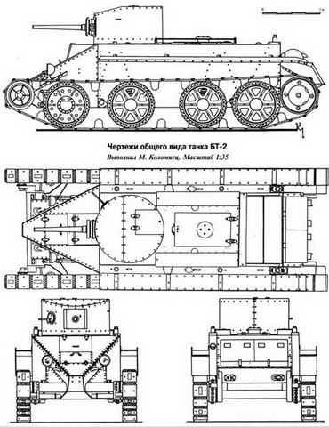 Ведущие колеса БТ-2 диаметром 640 мм – стальные сборные из двух дисков, соединенных пальцами. на осях которых располагались ролики, при помощи которых ведущие катки за гребни траков протаскивали гусеницы.