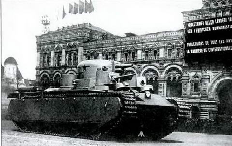 Второй прототип танка Т-35 (Т-35-2) на параде в Москве, 1933 г.