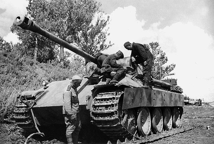 Бойцы Красной Армии осматривают подбитую «Пантеру». Воронежский фронт, июль 1943 года